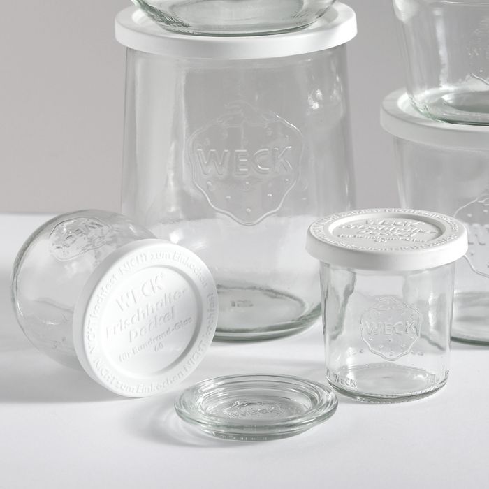 Pack of 6 white plastic lids. Made to fit our Weck jars in size small.