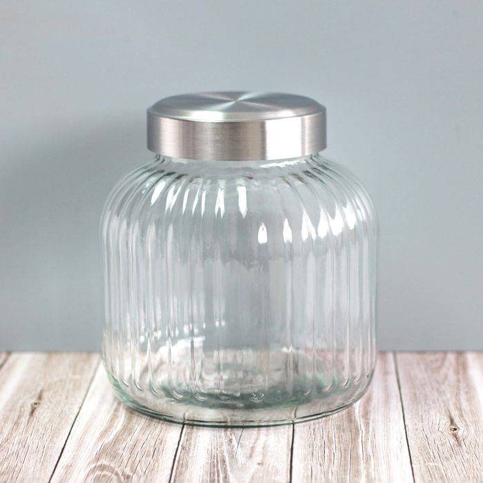 Our timelessly styled dry good barrels feature threaded screw tight lids and a generous mouth opening. Double as beautiful vases. Measures 18cm high. Mouth opening is 9cm in diameter. Capacity 2.8L.